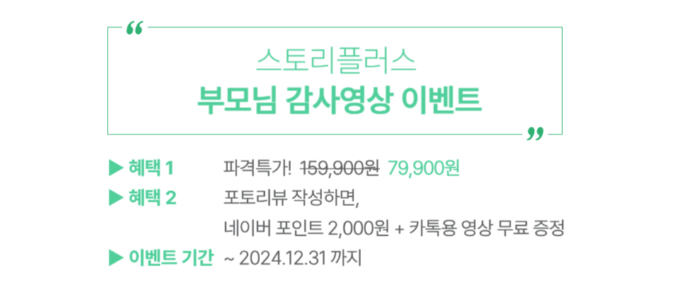 스토리플러스 부모님 감사 영상 제작 결혼식 셀프결혼식 주례없는 결혼식 식전영상 식중영상 생신잔치 생신이벤트 생신영상 환갑 칠순 고희연 퇴임식 행사 영상 제작 업체