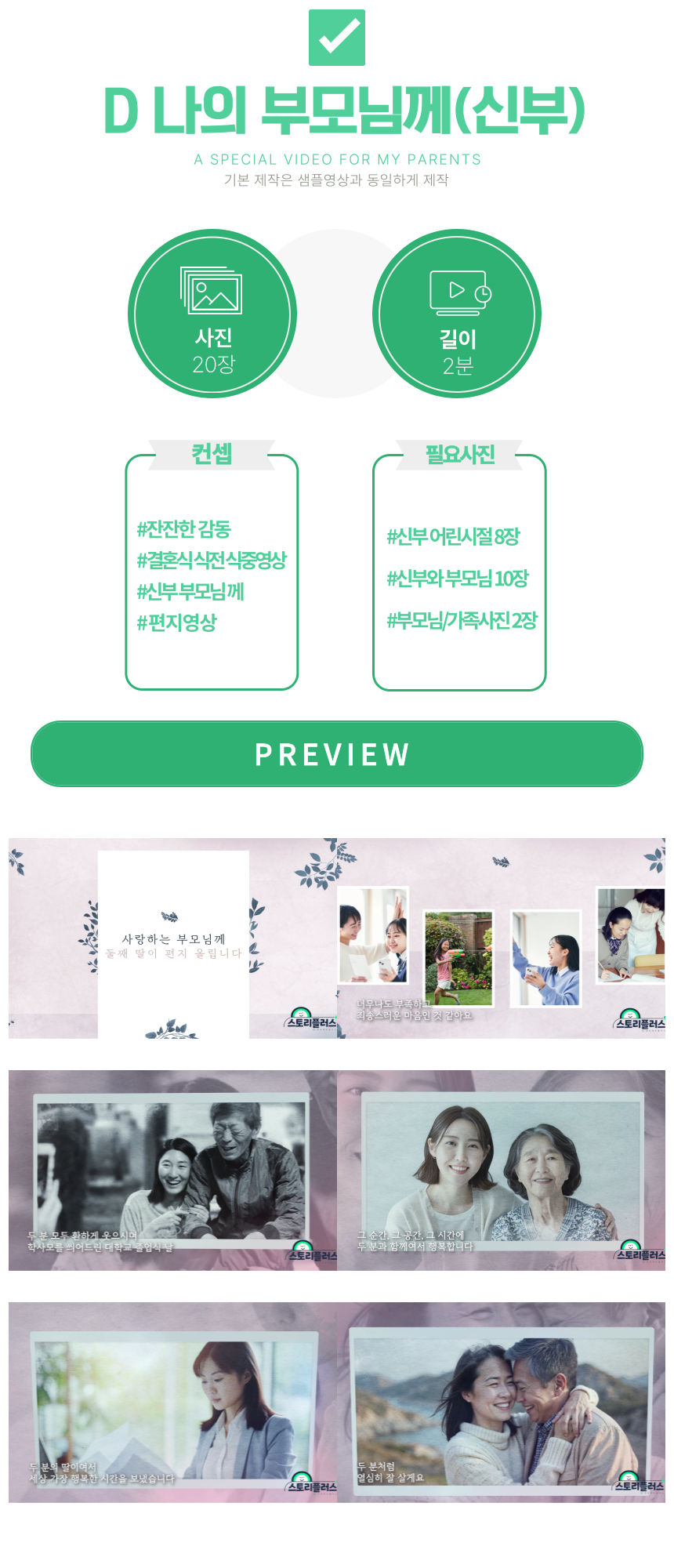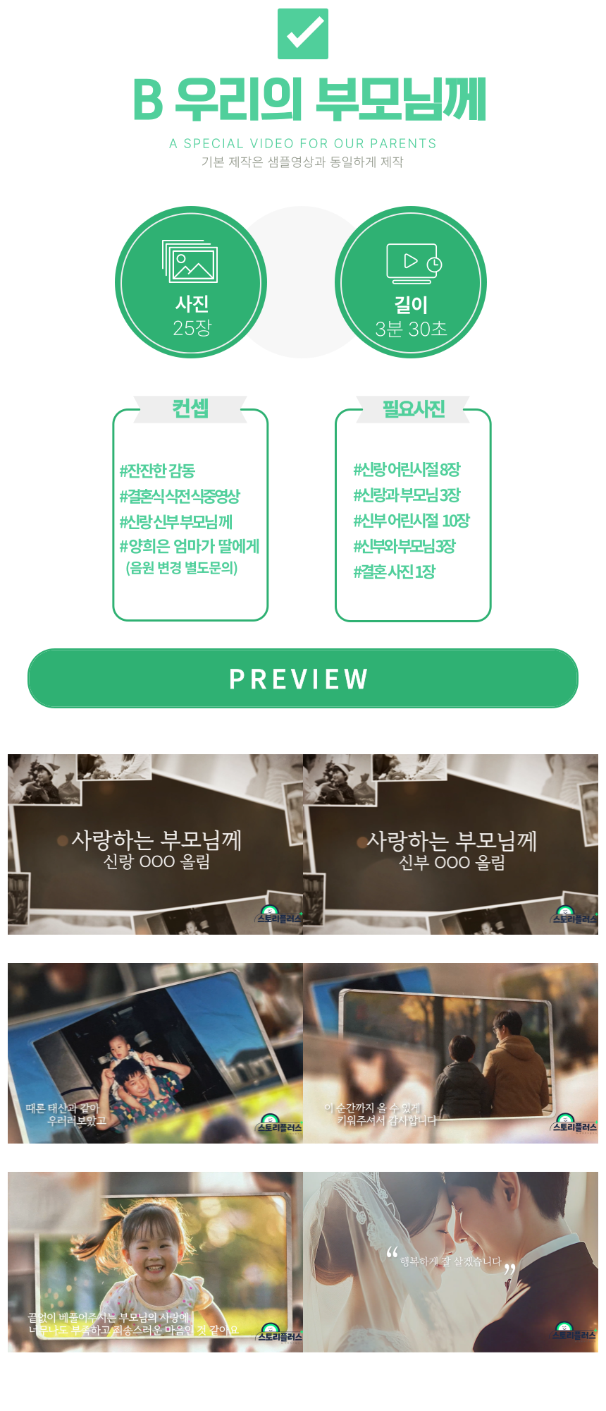 스토리플러스 부모님 감사 영상 제작 결혼식 셀프결혼식 주례없는 결혼식 식전영상 식중영상 생