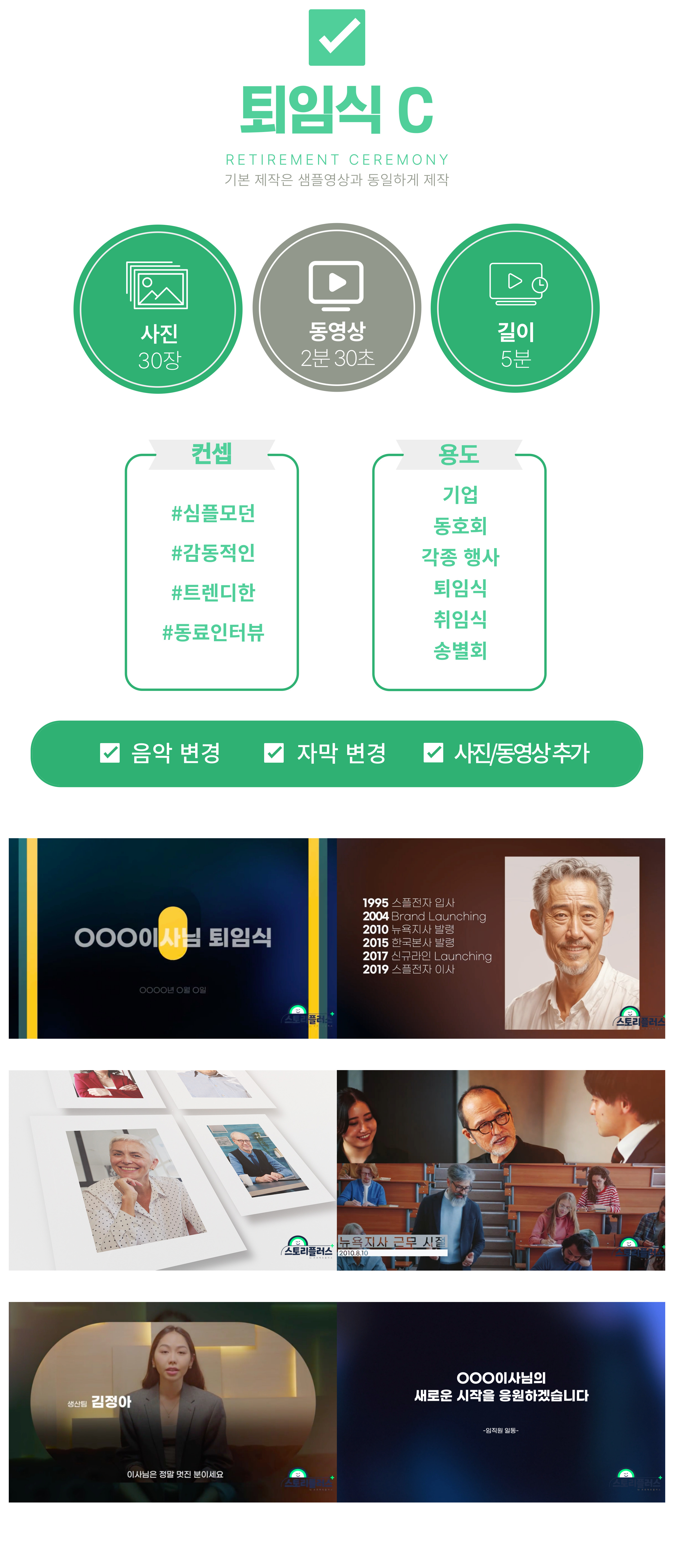 스토리플러스 퇴임식 취임식 행사 제작 기업 단체 동호회 송별회 송년회 홍보 광고 슬라이드영